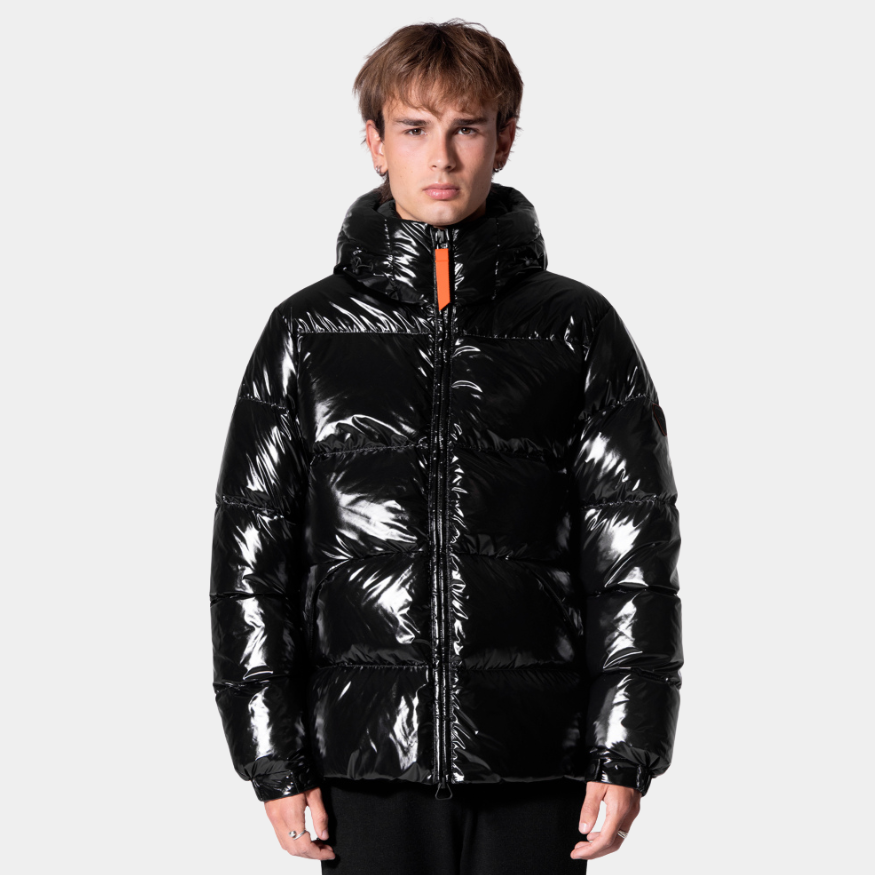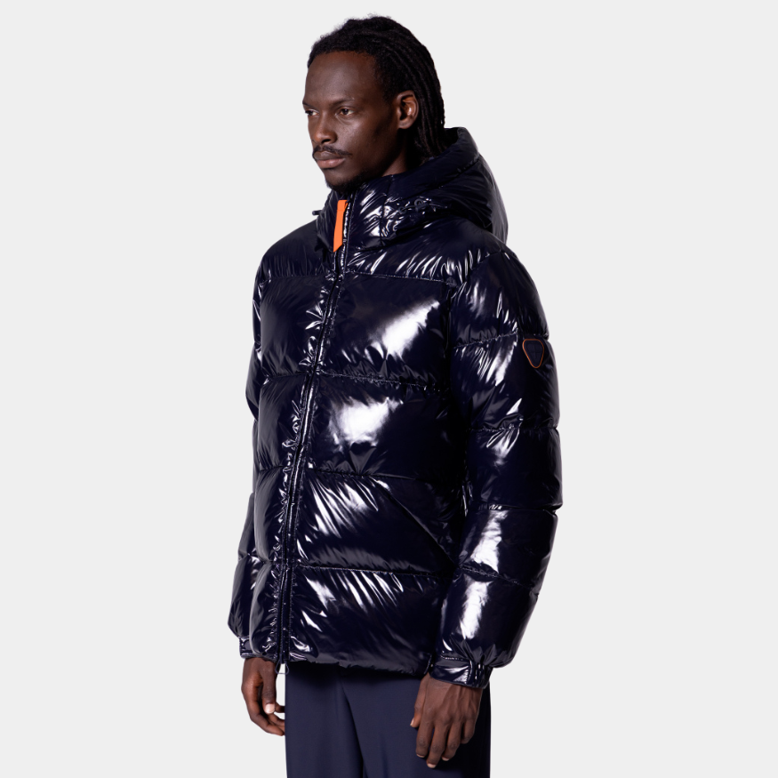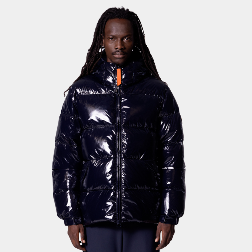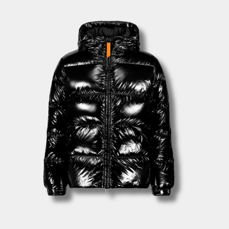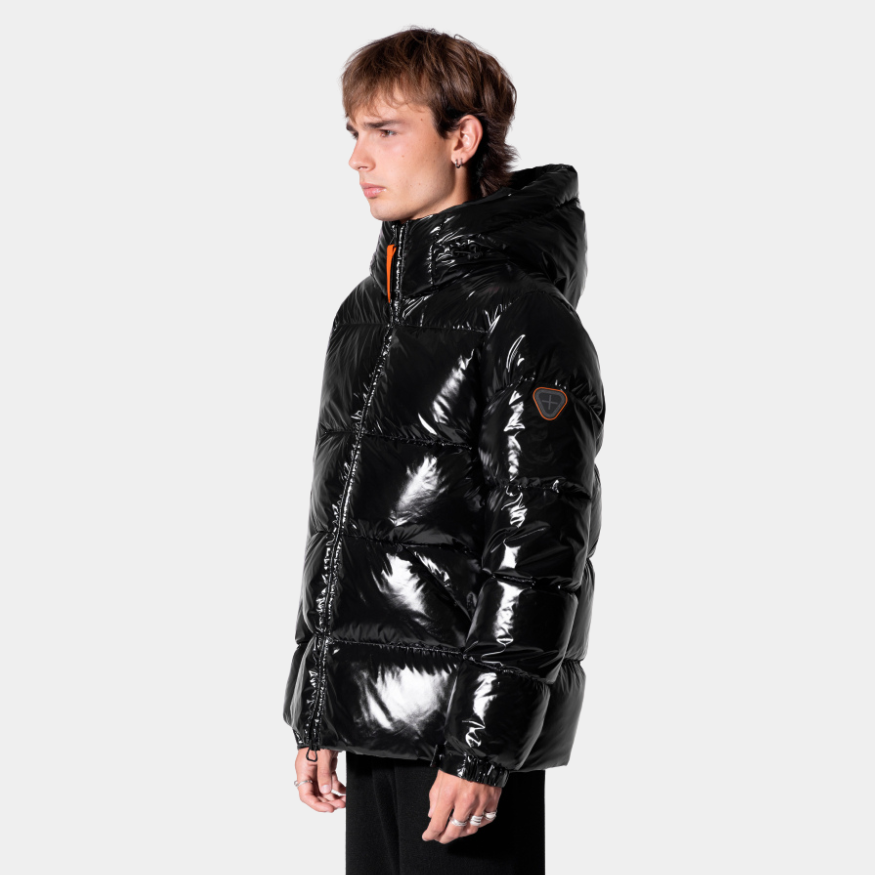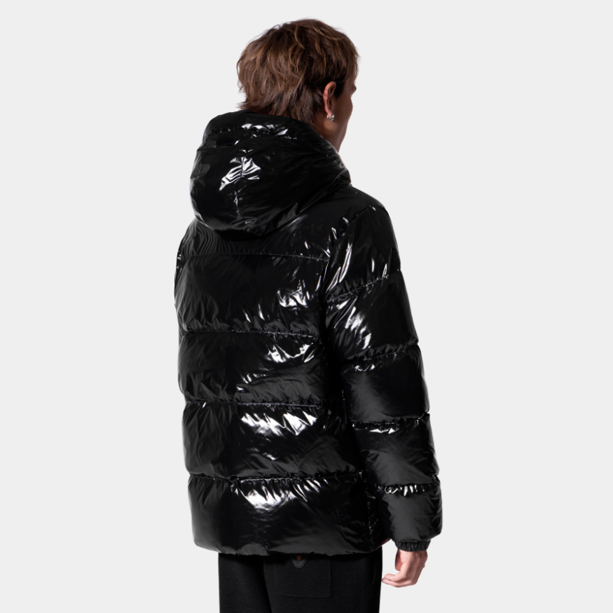 Son design gonflé et sa finition vernie captent la lumière, tandis que sa coupe ajustée met en valeur la silhouette sans compromettre le confort.